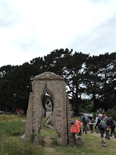 La partie sportive de l'après-midi a été confiée à Michelle et Jean-Yves (à qui nous disons aussi Bonne Fête) qui nous ont donné rendez-vous au parking de Boutdeville à Langueux. L'information n'a pas été comprise de la même façon par tous : 16 se sont rendus directement à Boutdeville, 16 autres sont partis de Trégueux comme d'habitude. Joli groupe au point de rassemblement ! Est-ce la perspective de faire un peu de sport pour ne pas culpabiliser en soirée devant les buffets de hors d’œuvre et de dessert ? Ou tout simplement le plaisir de randonner sous un vrai soleil d'été !
